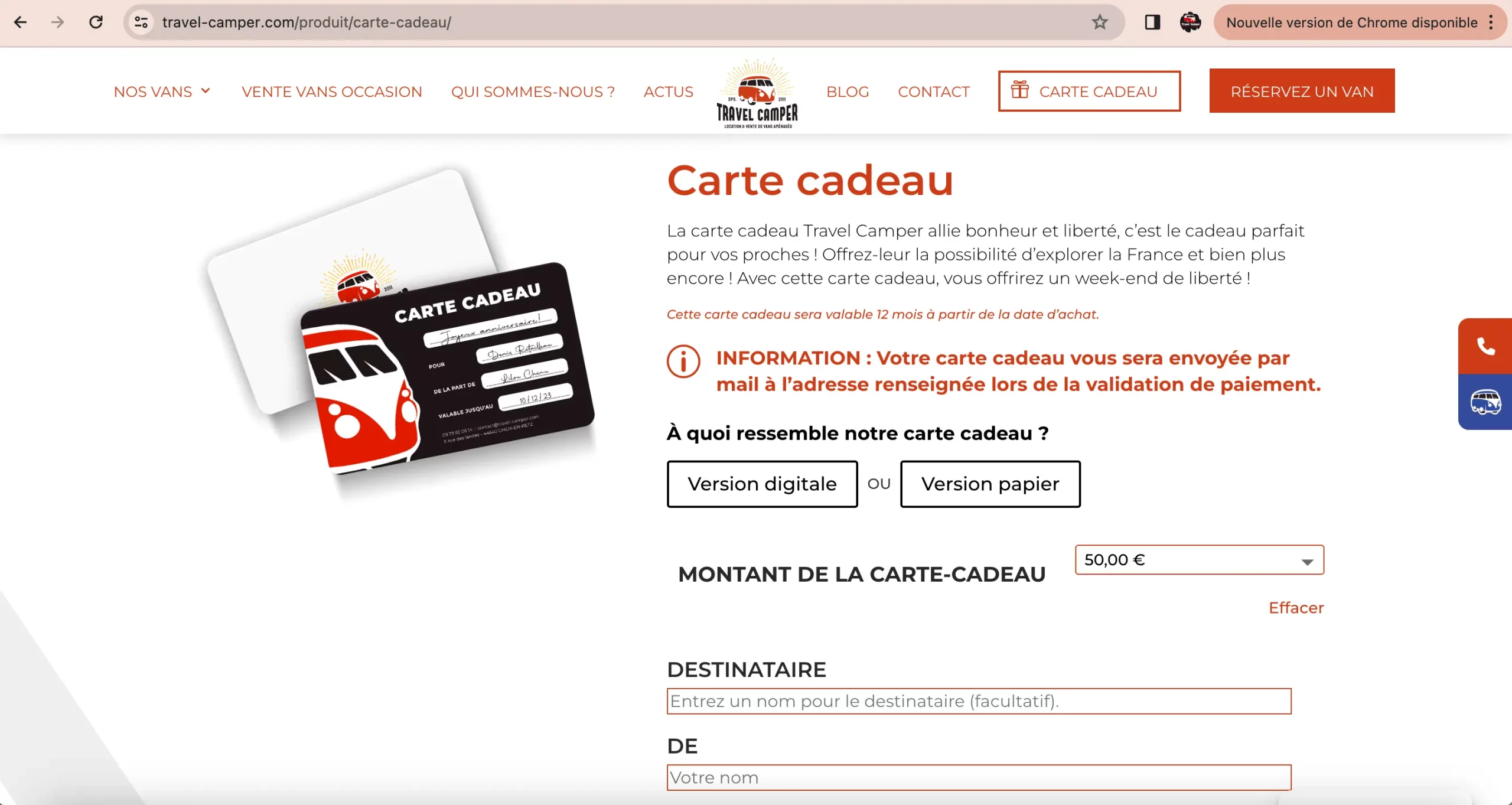 Vous pouvez désormais commander directement une carte cadeau en ligne du montant de votre choix ! Très pratique pour une idée cadeau de dernière minute.