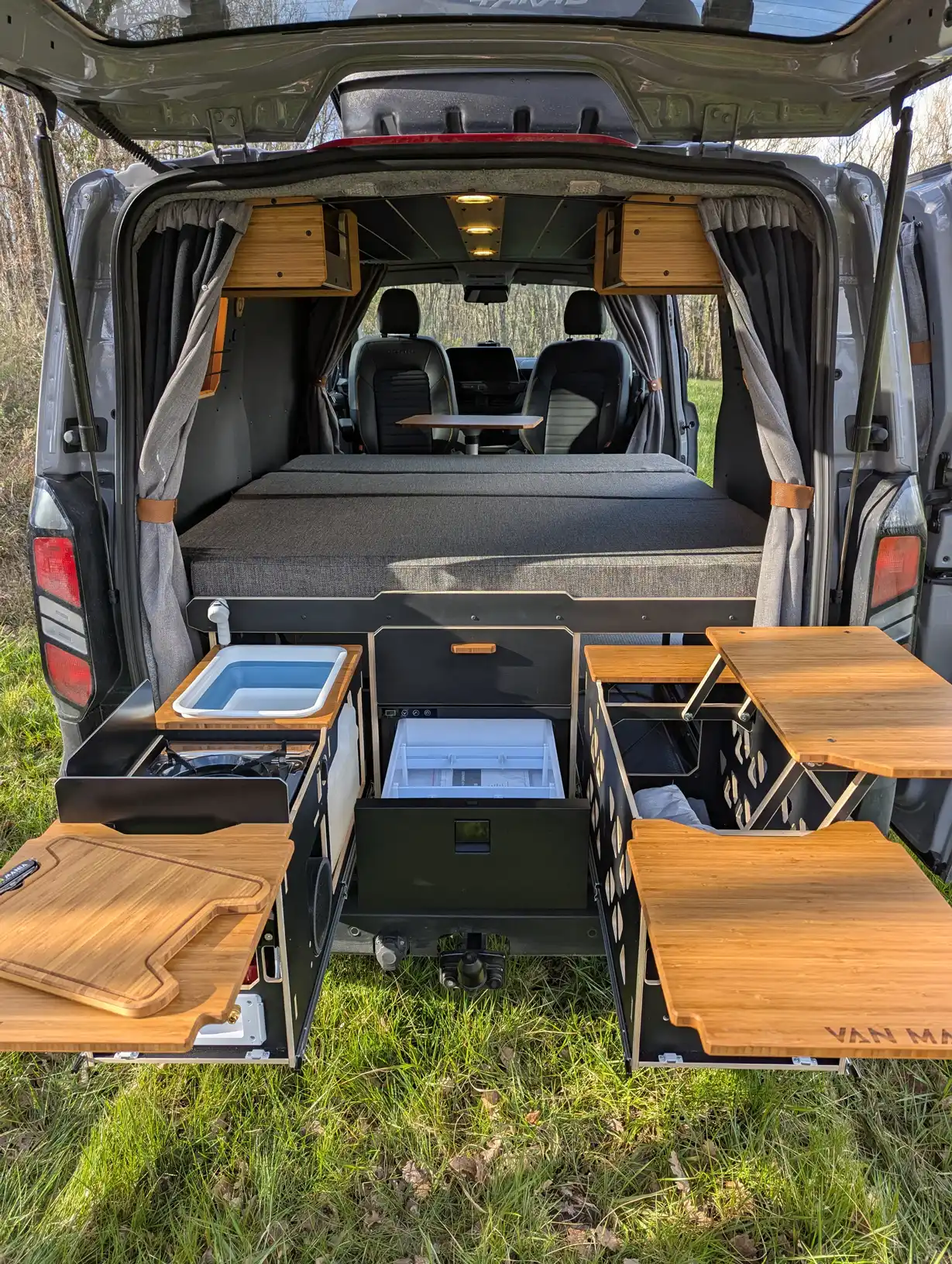 Et ce n’est pas tout ! La box astucieusement installée à l’arrière du van vous permet de concocter de délicieux repas en plein air, tout en profitant de l’environnement qui vous entoure. Imaginez-vous en train de cuisiner un bon petit plat au coucher du soleil, écoutant le doux murmure de la nature.