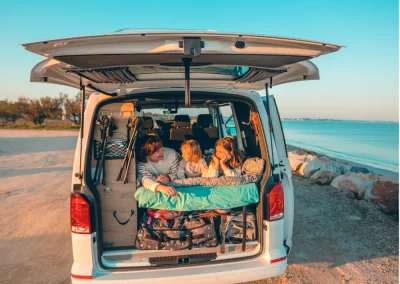 Chez Travel Camper, nous proposons à la vente des vans aménagés d’occasion très récents qui s’adaptent à tous vos budgets. C’est la garantie d’être tranquille et sûr de votre van, grâce à l’aménagement solide, testé et approuvé par de nombreux voyageurs. En cas de problèmes notre SAV est très réactif et comme nous aménageons le van nous même à 100% nous avons toutes les pièces et équipements en stock. Vous souhaitez tester avant d’acheter ? Venez louer un van pour un week-end, pour 4 ou 5 personnes maximum.